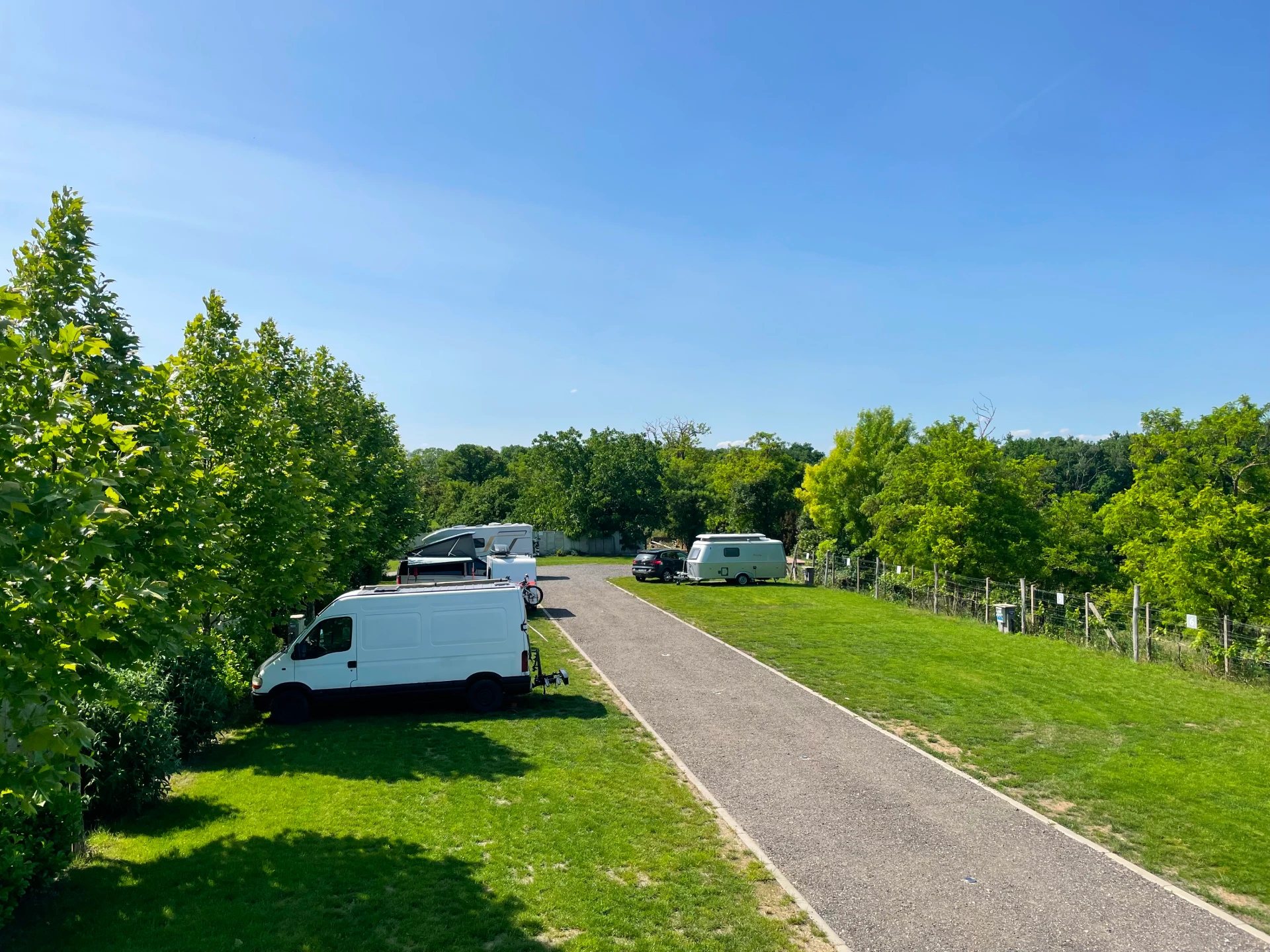 Každé stání je vybaveno zásuvkami pro pohodlné připojení karavanu nebo obytného vozu k elektřině